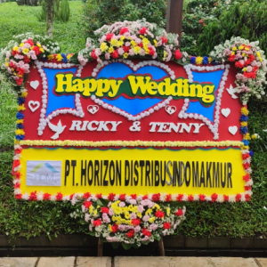 Papan bunga pernikahan bukan hanya sekadar hiasan pelengkap acara, tapi juga simbol perhatian dan penghargaan yang tulus dari Anda kepada kedua mempelai. Desain yang elegan, susunan bunga yang harmonis, serta pemilihan warna yang ceria membuat papan bunga menjadi pusat perhatian di lokasi pernikahan.